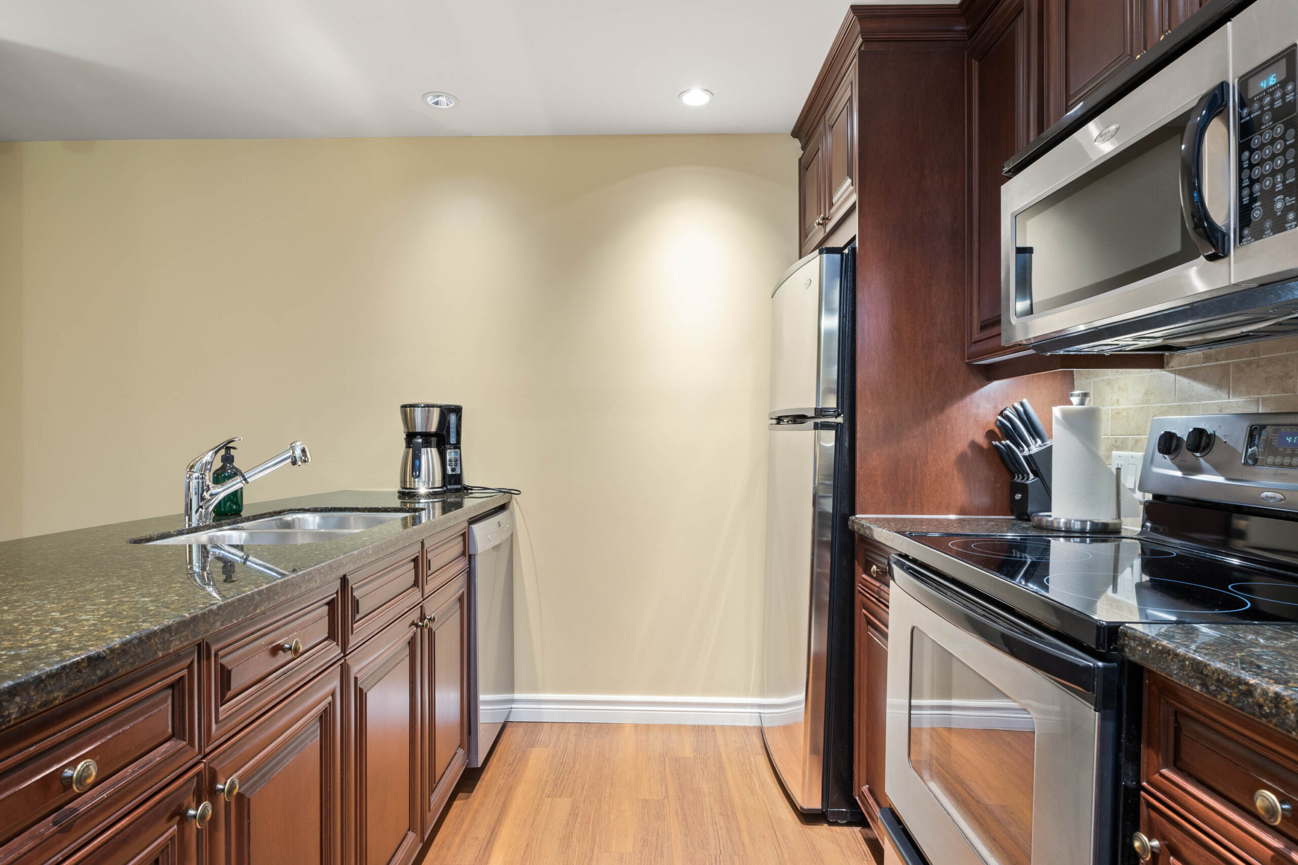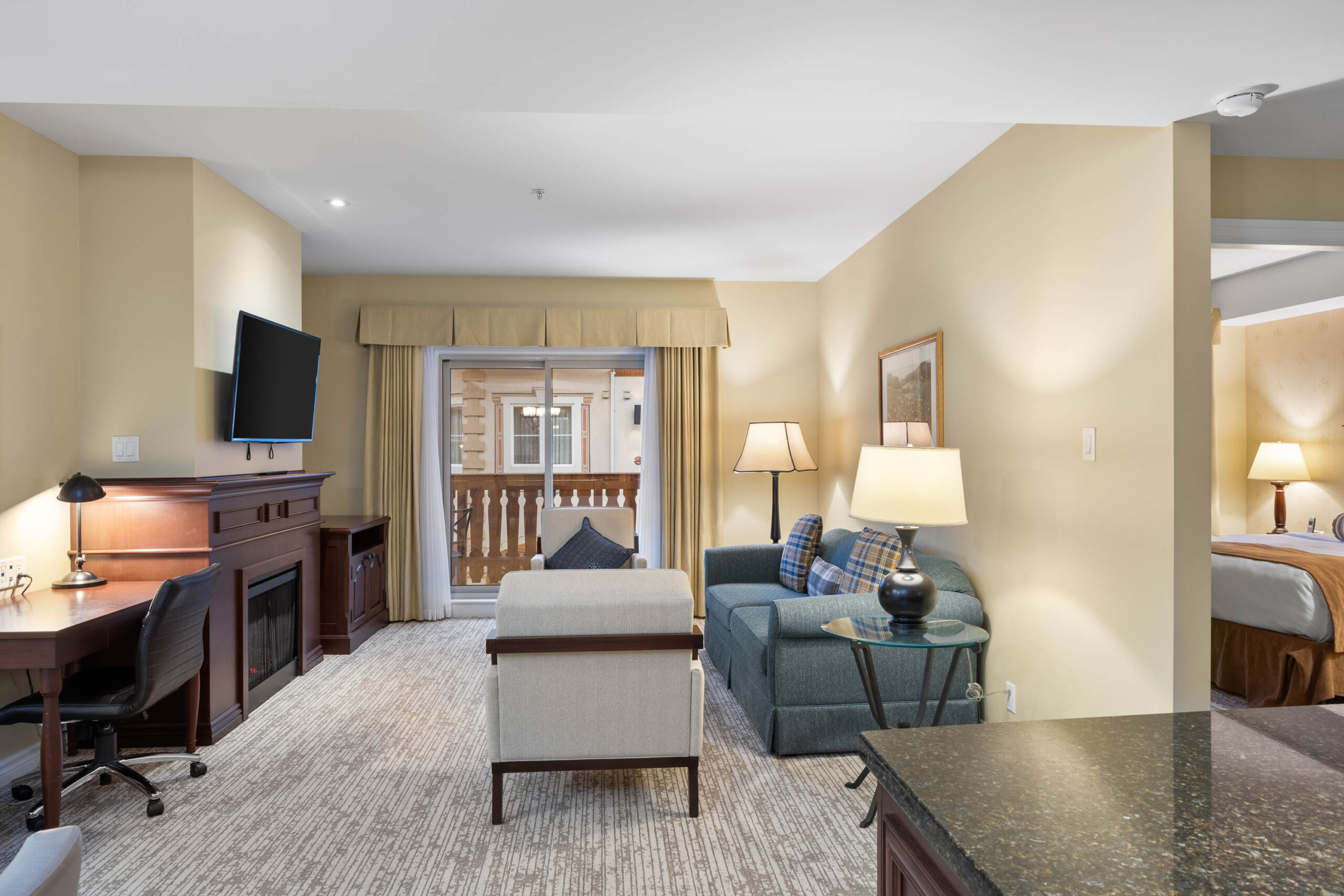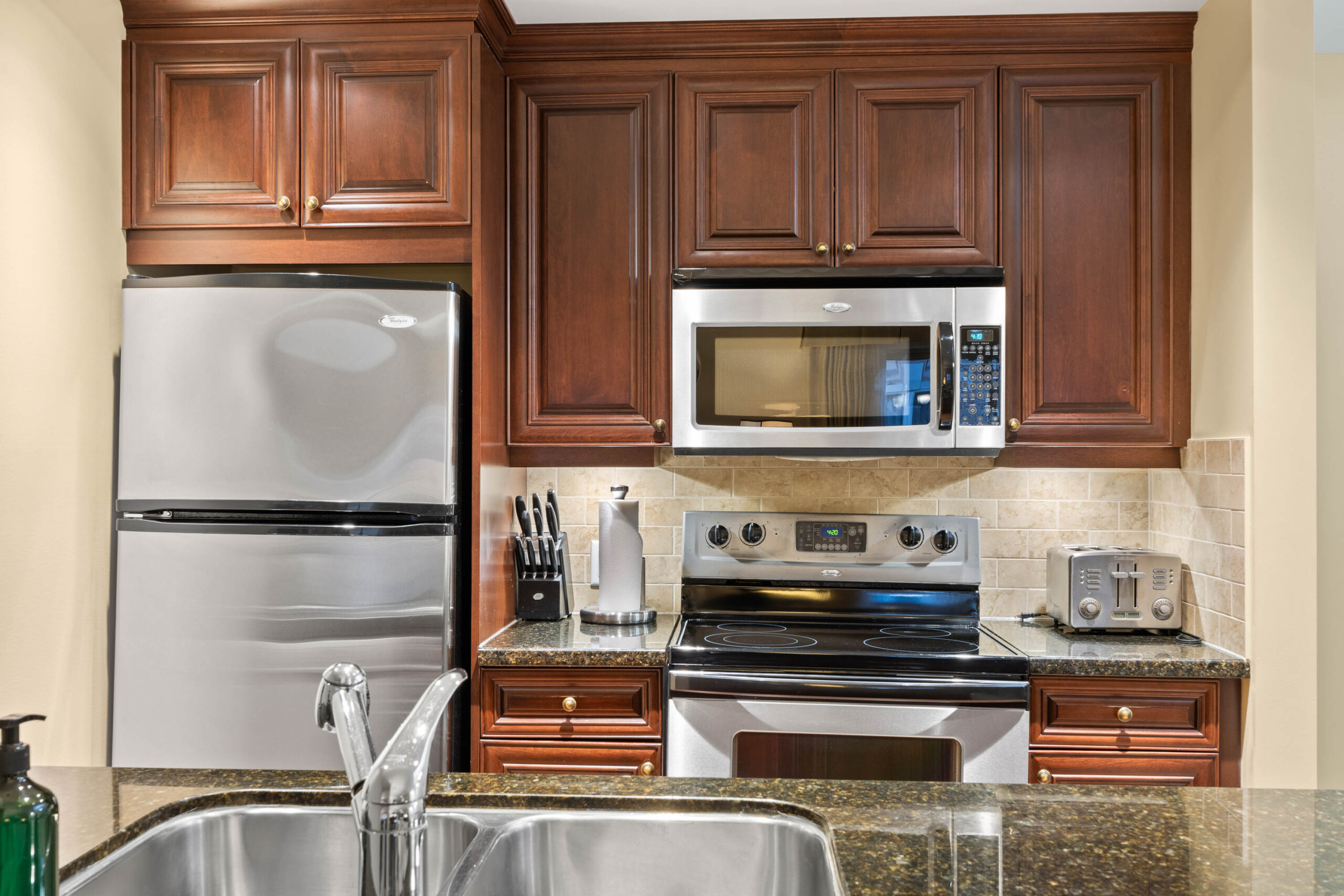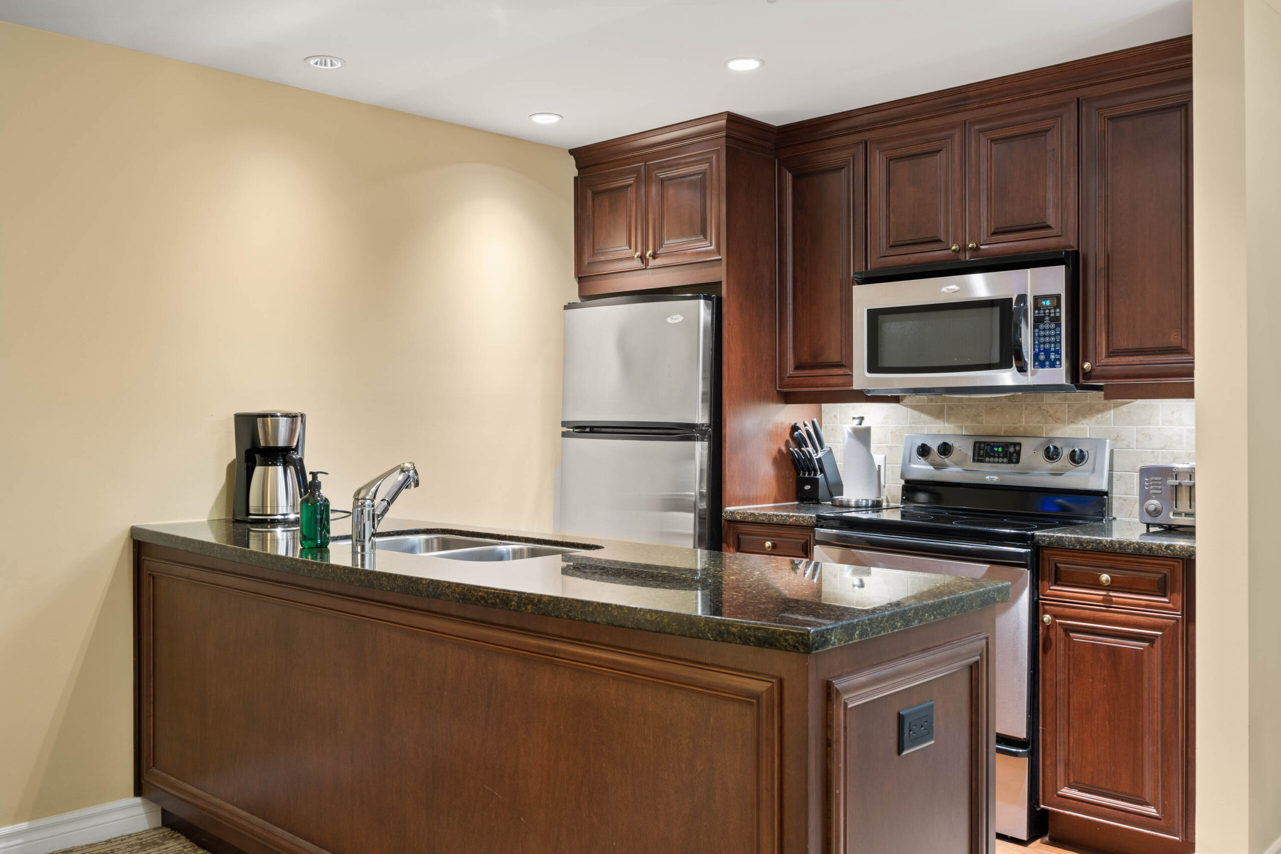 South facing deluxe 2 bedroom/2 bath quarter ownership apartment in the ski-in/ski-out Residences – located in the heart of Sun Peaks village. This vacation home is offered fully furnished with a full kitchen; complete with granite countertops & s/s appliances, spacious dining / living area, cozy fireplace, private deck with Village / mountain views, plus in-suite laundry. Take advantage of all the hotel amenities; including slope side swimming pool, hot tubs, gym, sauna, restaurants, ski & bike valet, room service, heated underground parking and more. 2 spacious bathrooms, central air and plenty of closet space. Professional in-house management company is in place to handle all the fine details while you are away. GST applicable.