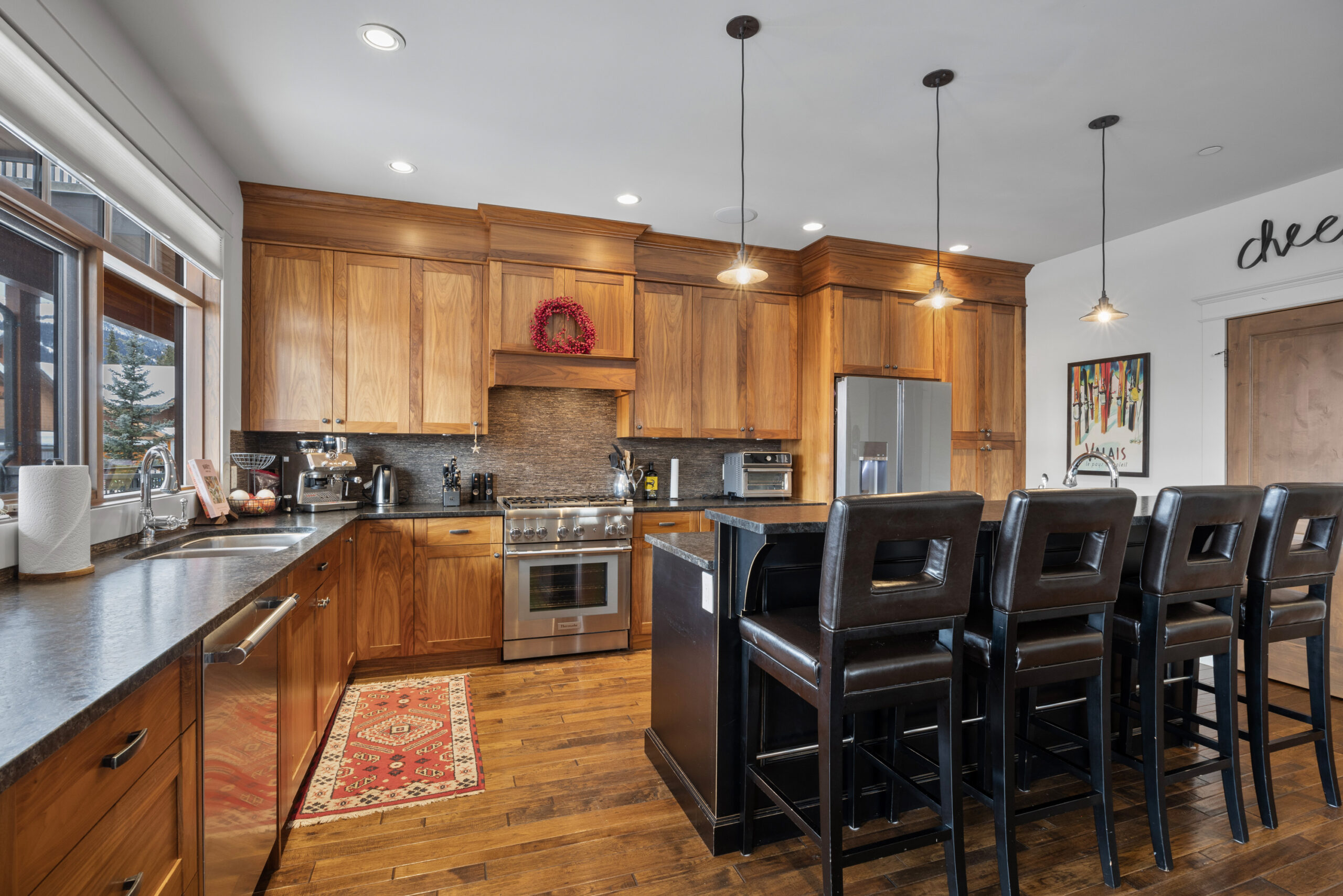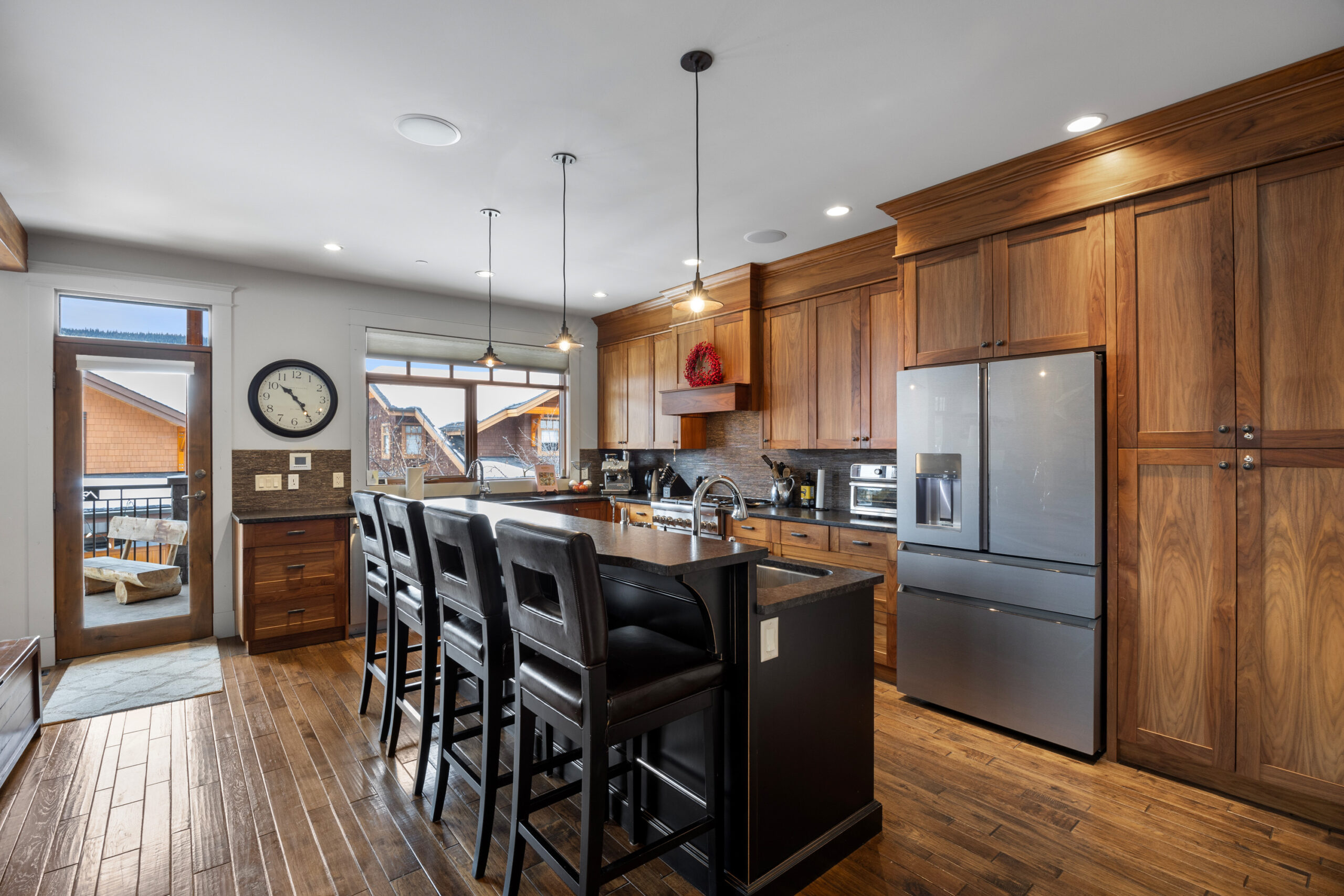 Located in the quiet East Village neighbourhood and highly sought- after, Bridge Gate offers mountain living at its finest, within a peaceful alpine setting – just a short walk or quick drive to the vibrant Sun Peaks Village with restaurants and shops. Ideally positioned along the 15th fairway of the Sun Peaks Golf Course, this property offers year-round recreation with ski-in/ski-out access in winter and golf course views in summer. Offering 4 bedrooms and multiple living areas, spacious media room and separate ski room- creating plenty of room for family and guests. Exquisite attention to finishing and detail with custom designed gourmet kitchen with granite and superior commercial appliances, impressive dining and bright living area with post & beam features, picture windows, beautiful wood flooring and stunning rock fireplace. Large 2 car garage provides plenty of extra storage. The master suite is luxurious and attractive with spacious walk-in closet, private sundeck and pampering ensuite with soaker tub. Whether you’re looking for a full-time mountain home, recreational retreat, or investment opportunity, this exceptional Sun Peaks townhome delivers space, comfort, and true four-season resort living. GST n/a; largely furnished.