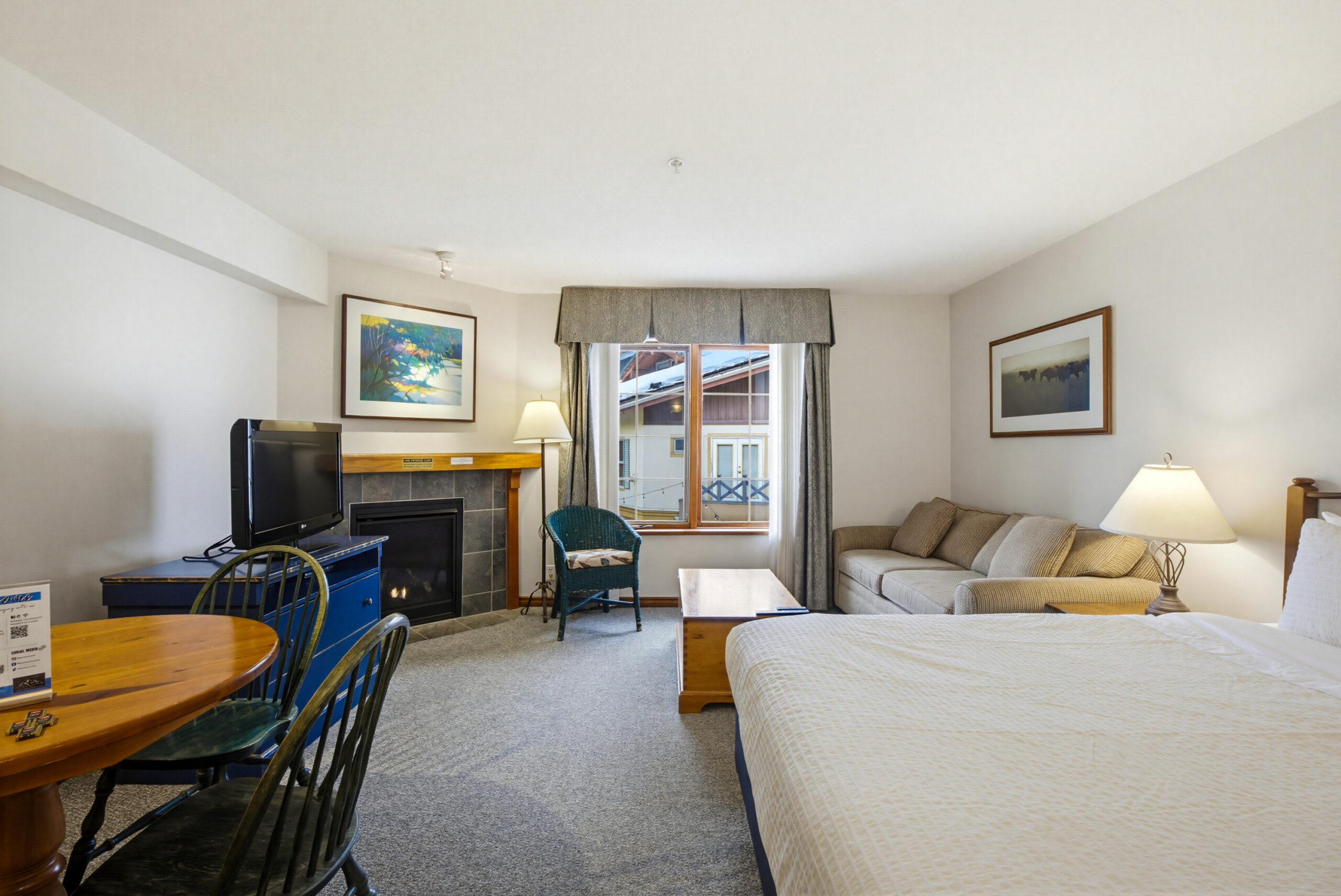 Welcome home to the Hearthstone Lodge! This cozy studio retreat with mountain & valley view’s sleeps 4, with a residential feel and comfortable layout. Features include a cozy gas fireplace. dining room table, queen sized bed & pull-out sofa, full sized fridge, microwave, dishwasher and cooktop, perfect for a quick weekend getaway or longer stays. Hotel amenities include hot tubs, exercise room, ski storage, secure underground parking, shops and restaurants. Enjoy ski-in/ski-out lodging located right in the heart of Sun Peaks Village, just steps from lifts. A popular choice for both winter ski trips and summer mountain getaways. Friendly & professional in-house mgmt. team 3 Peaks Rentals. Personal use up to 180 days / year. Offered fully furnished, GST applicable.