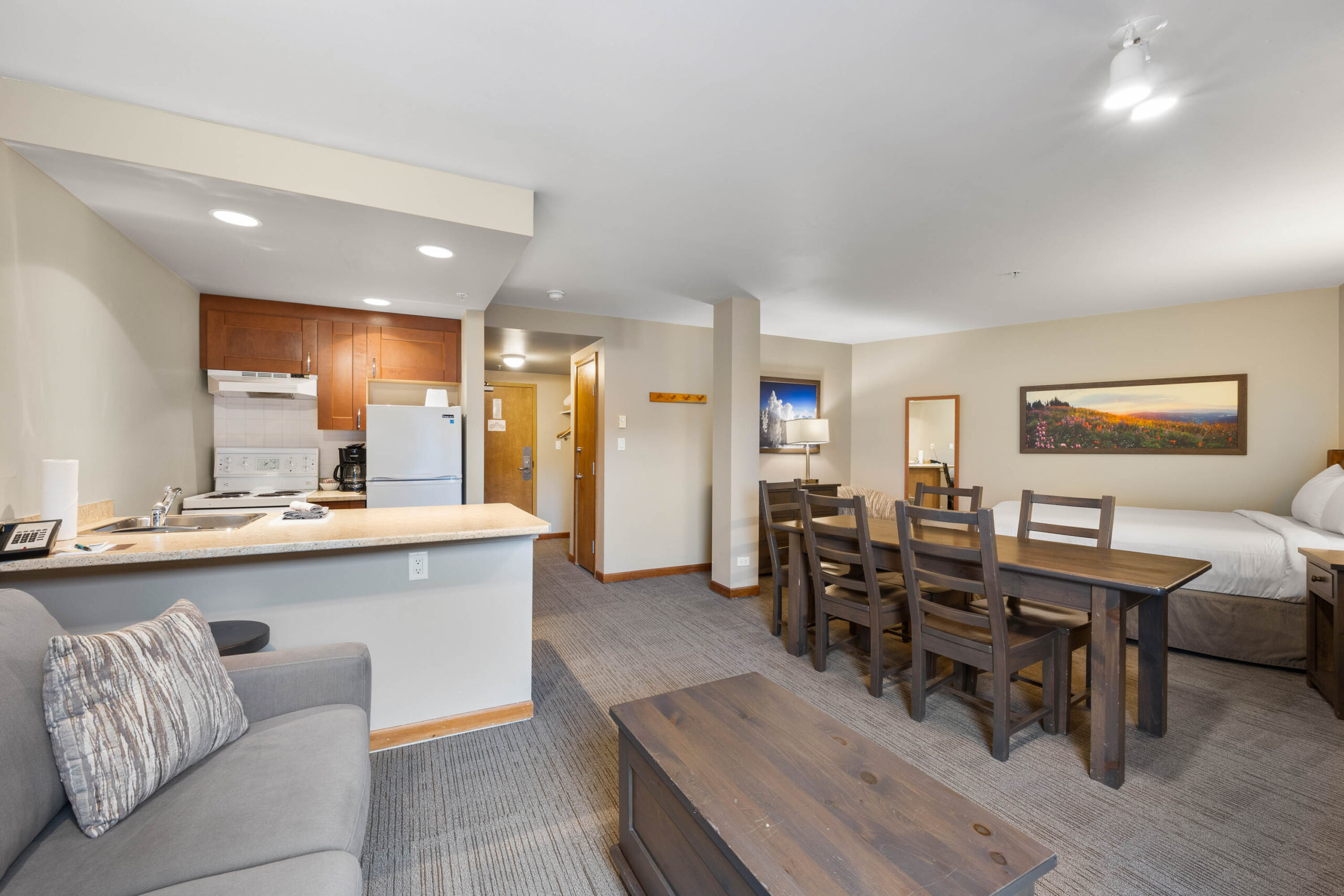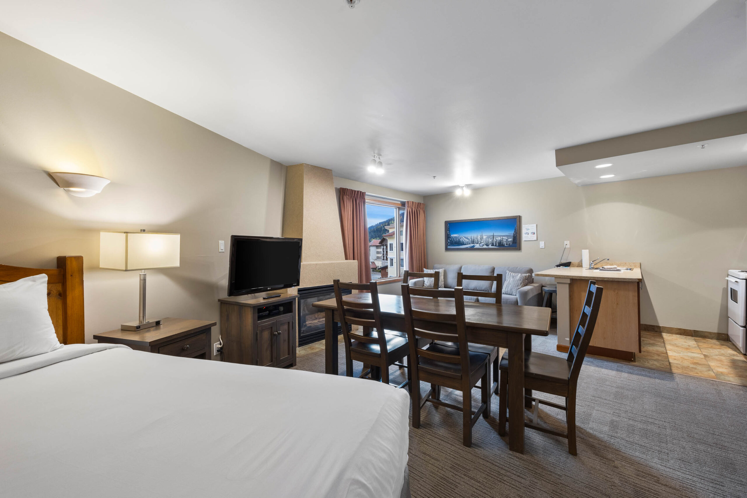 Boasting one of the best ski-in / ski-out locations at Sun Peaks, this upgraded Grand Studio sleeps 4 and is located just steps from Sun Peaks Village amenities. Enjoy single level living with a fully equipped kitchen; including a standard sized fridge, stove & dishwasher – perfect for longer stays. Gather around the cozy fireplace after a day on the slopes and take in the views to Mount Morrisey. Hotel amenities include indoor and outdoor hot tubs for your relaxation at the end of your day, a gym, ski storage, coin operated laundry facilities, wireless internet, and in-house restaurant. Relax and leave all the details to the professional and friendly in-house management team (Bear Country). Revenues in place for the 2025/26 ski season. Venture just steps from the door to activities such as biking, hiking, golf, alpine & Nordic skiing. Fully furnished; GST applies.